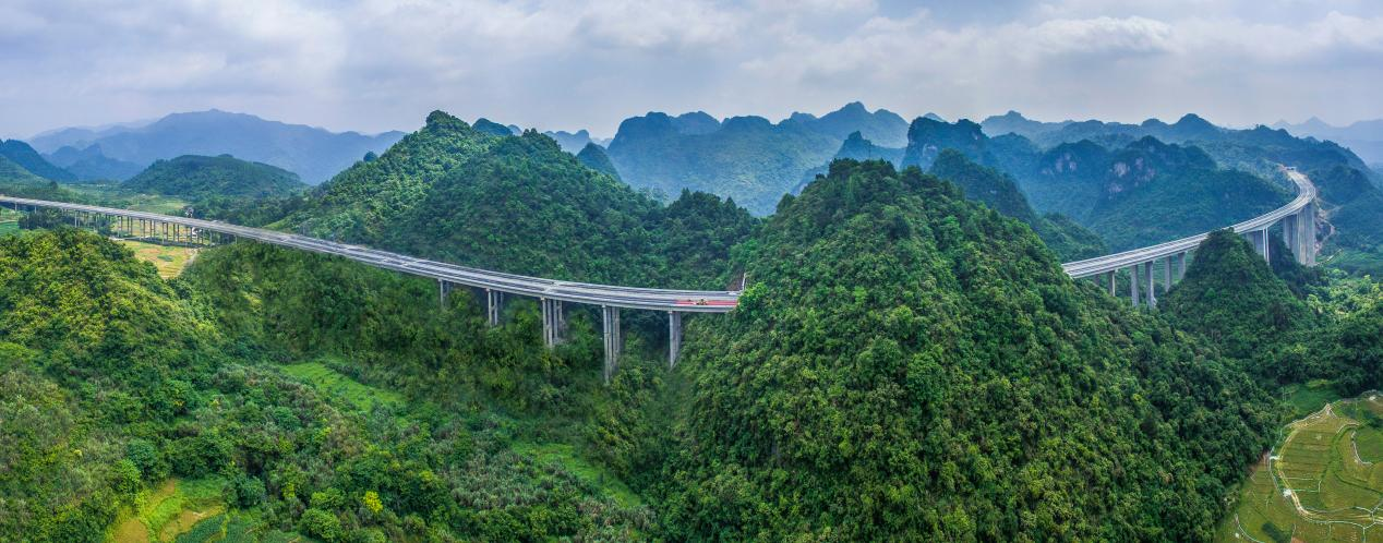 合那高速靖西市旧州互通立交桥美景,沿途山峦如黛,美如画卷(央广网发汪进任摄)