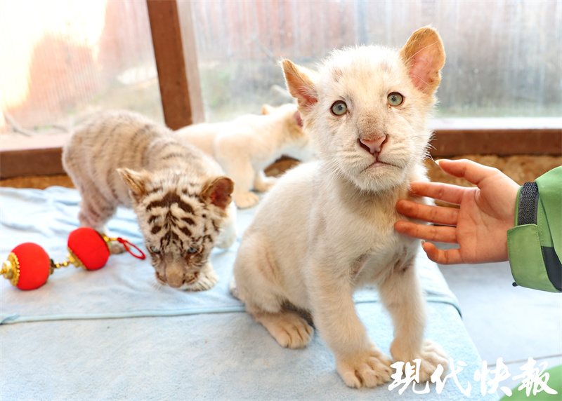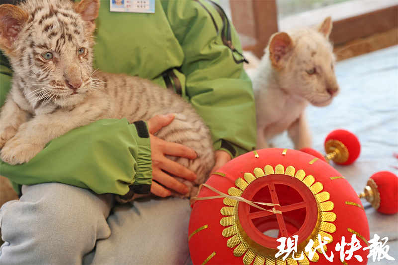 现代快报讯(通讯员 曹菁琳 记者 严君臣)元旦小长假,南通森林野生动物园两只世界珍稀动物雪虎宝宝正式与市民见面,不少游客到场认识这对可爱的动物幼崽。现代快报记者了解到,雪虎是白虎基因进一步变异的结果,出现概率为10万分之一。