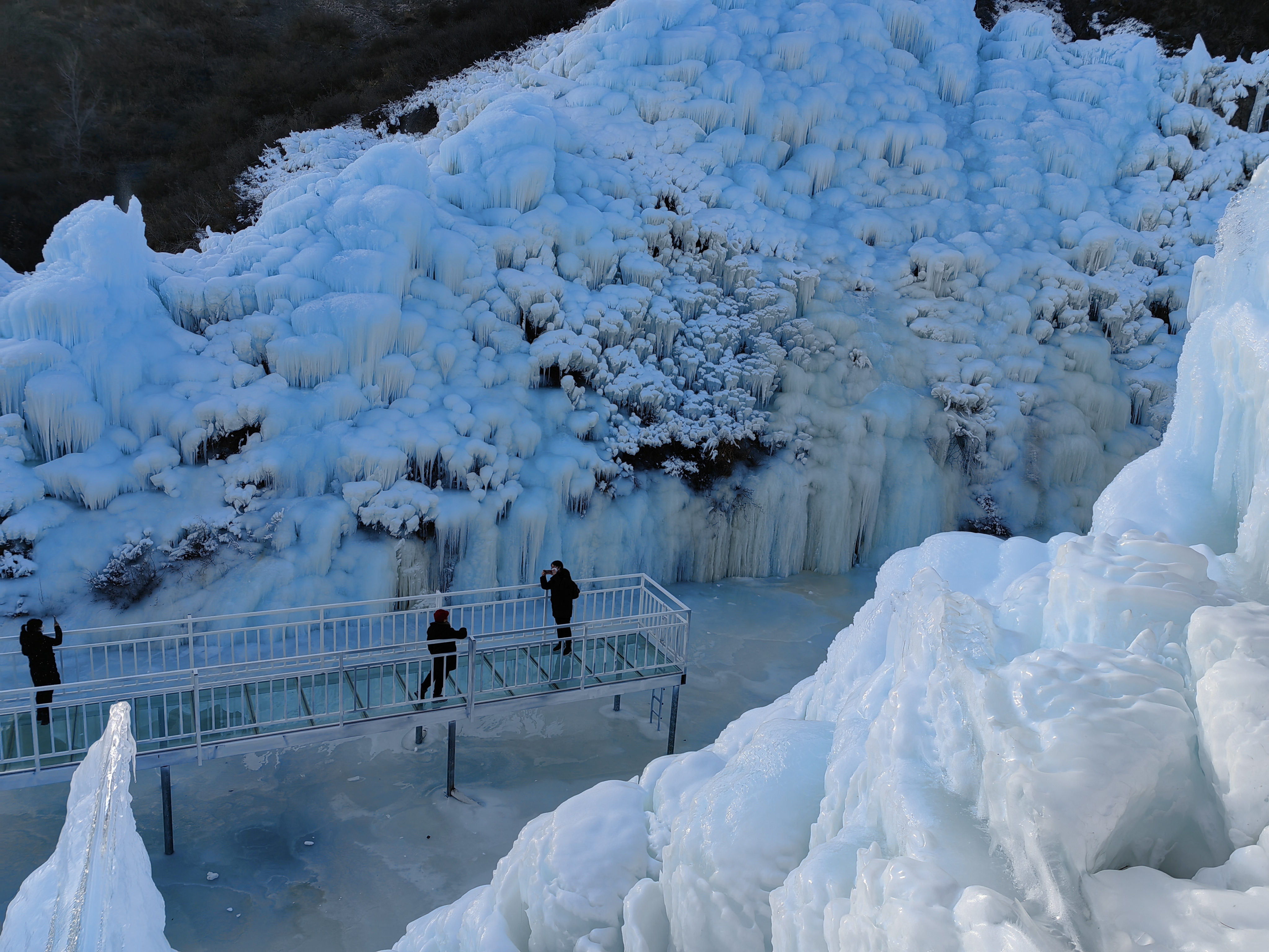 晶莹剔透的冰柱高悬于陡峭的崖壁之上,在阳光的照射下透着淡淡的蓝色,尽显寒冷中的静态之美。北京延庆云瀑沟景区迎来冰瀑最佳观赏期,吸引不少游客前来“打卡”拍照。1月1日,“冬游赏‘冰’趣·旧县过大年”北京延庆区旧县镇冬季旅游欢乐季在云瀑沟景区启动。