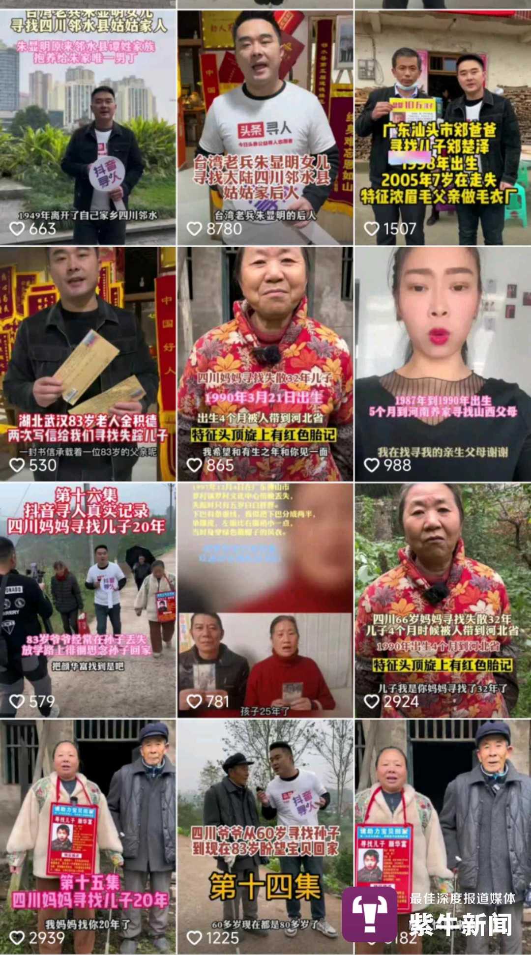 此后,甘彪正式走上了帮人寻亲的道路。扬子晚报紫牛新闻记者看到,截至目前,运营寻亲短视频账号4年的他拥有14.7万粉丝,共发布了2800余条视频,获得了250多万网友点赞。