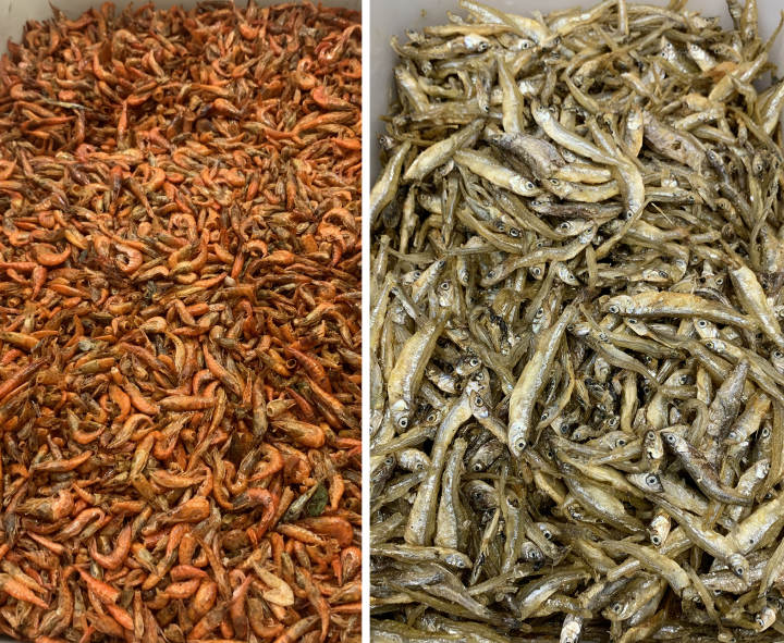 店里有很多地道的开化食材,老乡们在点菜时看到,立刻就觉得特别亲切。这种小虾米和小鱼干,虽然其貌不扬,但是喜欢点的老乡特别多。