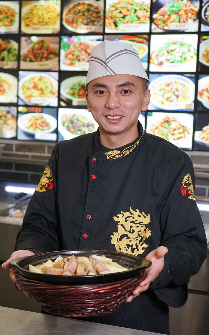 余军17岁入行,已经有20年的工作经验,一直都在烧开化菜。说起小寒节气吃什么,他觉得非这道冬笋咸肉煲莫属。这是一道经典的开化家常菜,汤汁鲜美,冬笋脆爽,咸肉鲜香,每年到这个时候,家家户户都会做。