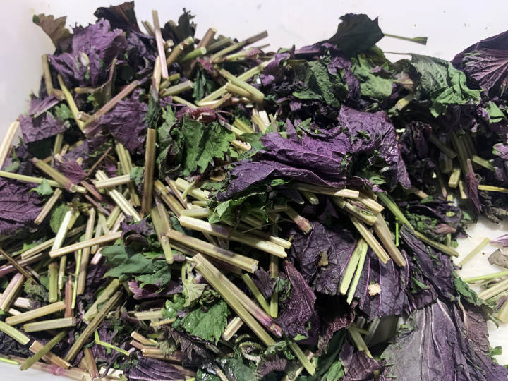 紫苏是开化厨师离不开的食材,用紫苏调味也是开化菜的特色之一。一把紫苏下锅,烧出来的鱼顿时就有了灵魂。