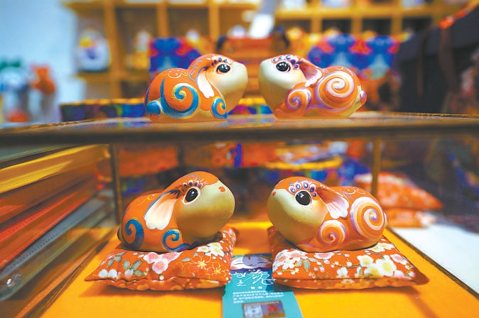 胡鹏飞在兔儿爷设计上始终坚持“将非遗传承在当下”理念,坚持两条路并行。一方面,坚守以最原汁原味的手法来传承兔儿爷这项非遗技艺,尤其是将兔儿爷背后的吉祥文化、民间习俗这些元素传承下来。另一方面,他通过商业手段,结合当代人的衣食住行进行创新,希望兔儿爷乃至兔儿爷所代表的吉祥文化得到更多年轻人的认可。