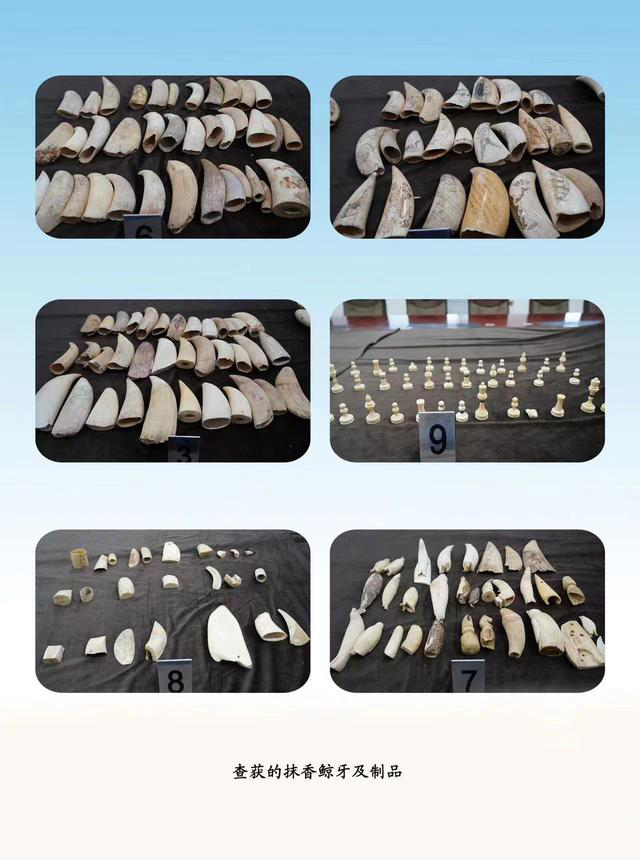 查获的抹香鲸牙及制品。图源:饶河县公安局