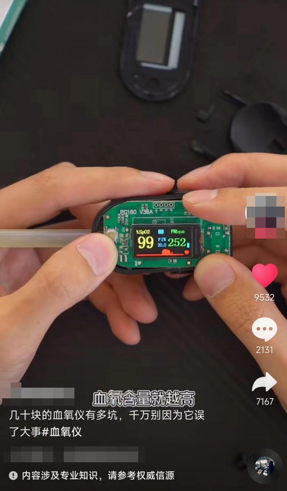 该网友在某社交平台爆料称,自己网购了一款几十元的指夹式血氧仪,经拆机后发现结构简陋,其中只有一个LED灯,“检测血流通过手指的血流变化来确定血氧心率数据。”这位网友在视频中还表示:“越是透明的东西含氧量越高。”他使用一根半透明塑料棍进行了测试,并表示“这基本就是个玩具。”而在评论区,不少网友却给出了不同的意见,“再贵的血氧仪也是这个原理”“传感器本就通过红外检测血氧浓度,这跟你放什么东西无关。”事实果真如此吗?对此,上游新闻进行了了解。