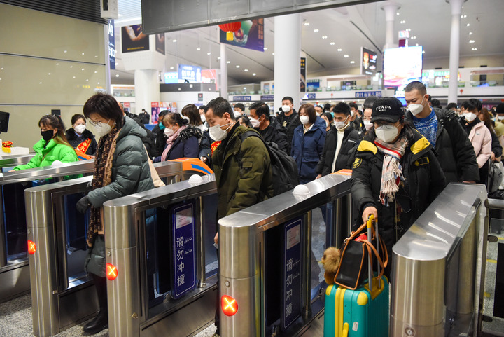 1月7日,旅客在合肥南站进站乘车。新华社记者周牧摄