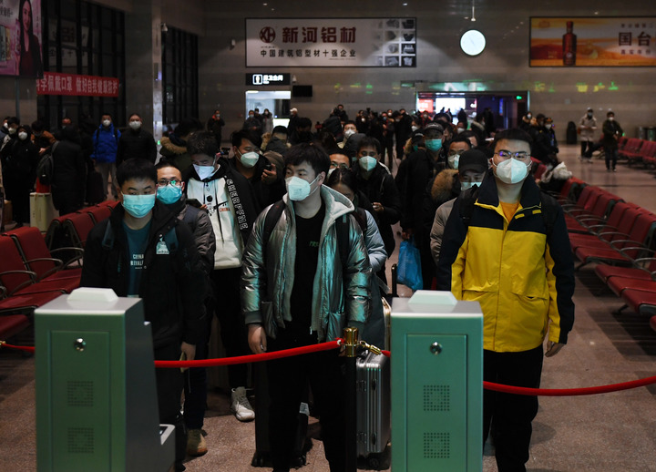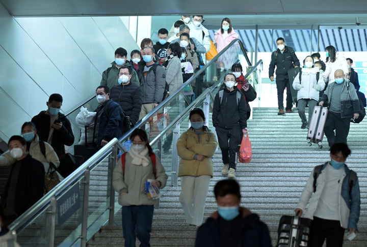 1月7日,旅客在北京西站排队等候检票。新华社记者张晨霖摄
