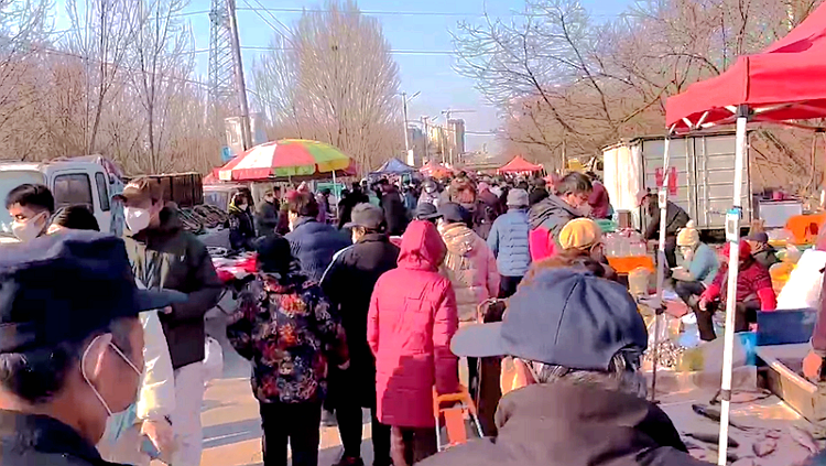 晶莹剔透的糖葫芦、刚出炉的瓜子、活蹦乱跳的海鲜、整整齐齐的锅碗瓢盆、色泽鲜艳的衣服鞋帽、各种肉类、水果蔬菜……腊月里赶年集,购置年货,是很多人儿时的美好回忆。1月10日,农历腊月十九,记者来到了位于腊山片区的王府庄大集,现场看到赶集的人一拨接一拨,人头攒动,摩肩接踵,此起彼伏的吆喝声、讨价还价声,汇聚成了充满温馨与热闹的大集味道。