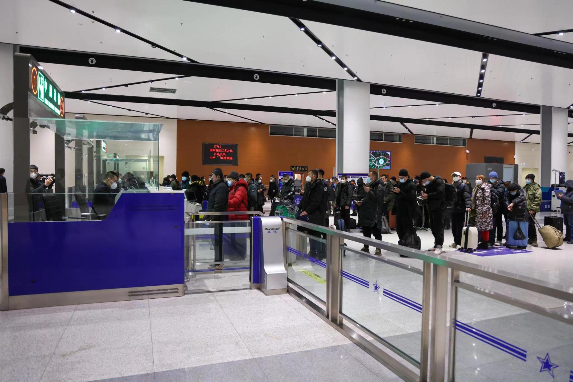 1月11日,旅检通道首批152名旅客从绥芬河通关入境(央广网发绥芬河市委宣传部供图)