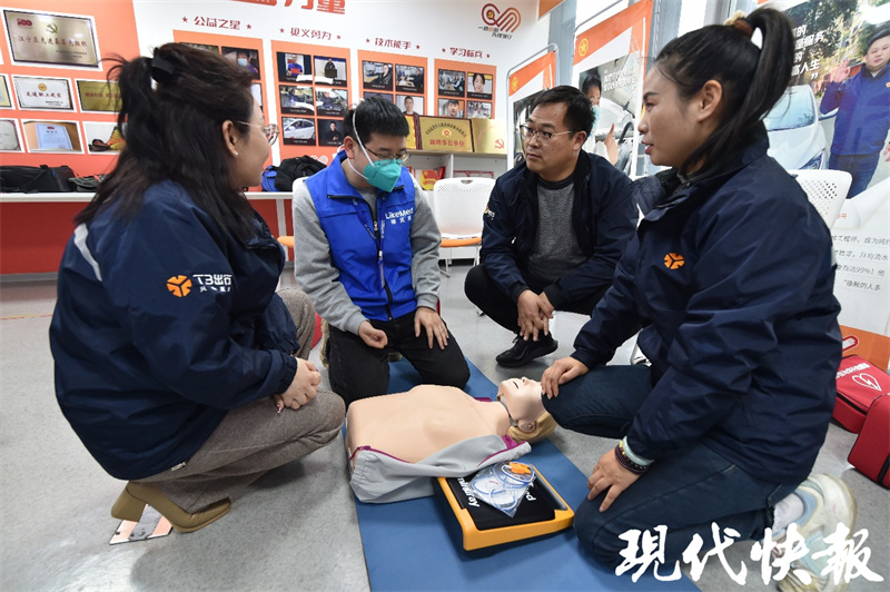 “司机师傅每天穿梭于城市的大街小巷,经常会遇到市民需要紧急救护的突发情况。如果他们车上配置了AED设备,并且掌握了急救知识和技能,就能在第一时间出手去急救,抓住挽救生命的‘黄金4分钟’。未来,我们也会与南京的急救管理体系加强协同,把这批移动AED变为城市公共设施。”T3出行CSO、工会主席成凯表示。