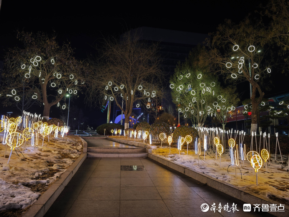 1月11日17:00,在龙海广场上,工人们正对该广场的节日灯光秀进行调试。“雪花是烟台本地的一个特色,我们在广场上安装了十片雪花造型的灯光雕塑,让市民在春节期间拥有网红打卡地,把节日的欢乐和喜悦传递、分享给家人和朋友。”吕忠园介绍,这个广场的灯光秀主题为飞雪盈门,“雪花飞舞,瑞气盈门”主题灯光雕塑取材于烟台冬季漫天飞舞的特色美景,象征美丽、洁白新春祥瑞祝福,雕塑装置取雪花落地瞬间的场景,体现幸福洒满大地的美好期望,营造与众不同的新春氛围体验。