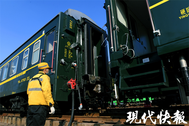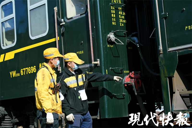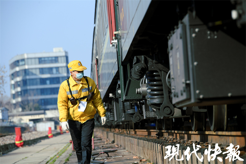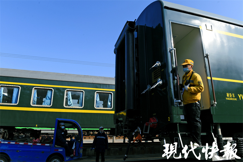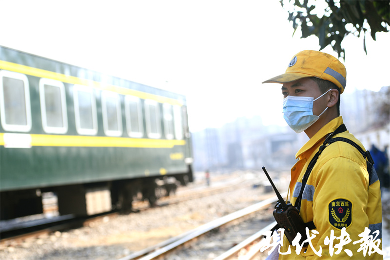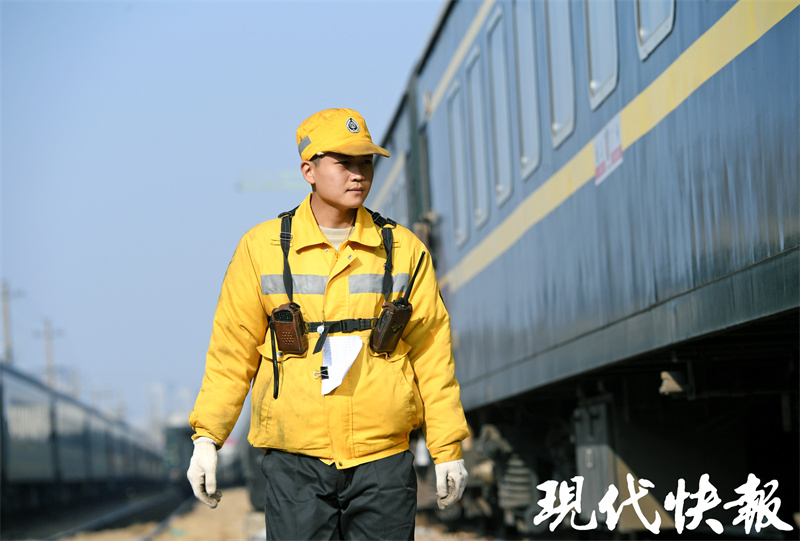 代快报讯(记者尹翼星/文苏蕊牛华新/摄)出生于2002年的邵楚文博,是名副其实的“00”后,在2022年大学毕业后入职了铁路南京站,成为了一名调车连结员。2023年,是邵楚文博从校园迈向工作岗位的第一年,也是他经历的第一场春运,这个春节,他将在工作岗位上度过。