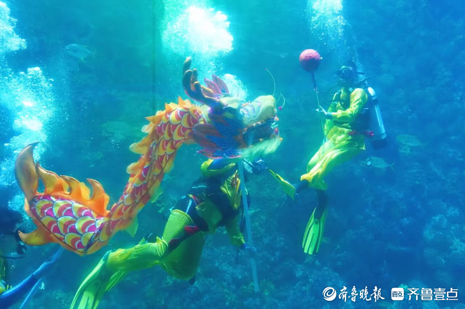 据悉,春节期间,青岛极地海洋公园精心策划了“摩登METOO海洋春乐会”,将传统春节元素与潮流摩登元素结合。正月初一至十五游客可以打卡“千灯祈福船、摩登春联艺展、萌兔后花园”等网红互动区。此外,公园还推出了春节限定的《水下舞龙秀》,水秀演员将装扮成两条金龙,潜入水中,与海龟、鲨鱼和各色海洋鱼类一起演绎传统的舞龙。为了在高压和高浮力的水下展示出舞龙的气势和灵动感,演员们提前40天就开始排练,让舞龙能在海底焕发出空前的奇妙感。看到彩排的游客都惊叹:“只看过陆地上的舞龙,还是第一次看到水下舞龙,太奇幻、太惊艳了。”