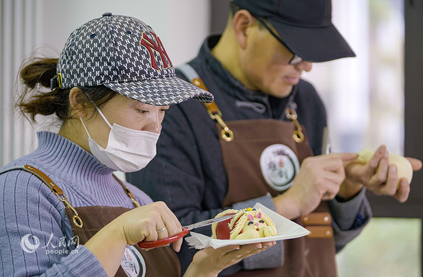 2023年1月16日,雄安非遗传承人正在制作兔子花饽饽。人民网李兆民摄