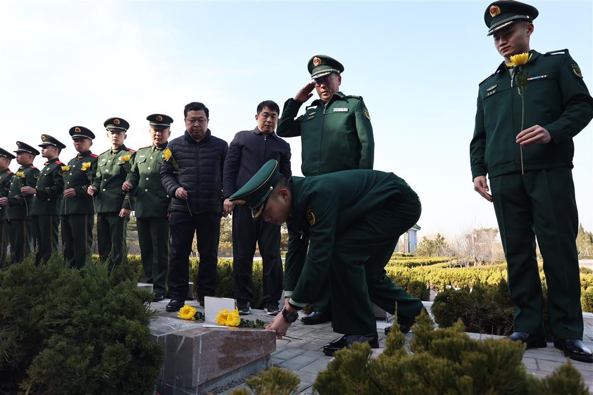 “林雨,我们来看你了。”19日,寒风萧瑟,松柏凝萃,深冬时节的新泰市革命烈士陵园显得分外肃穆。当天上午10时许,李林雨生前部队战友来到陵园,手持鲜花,祭奠战友。在李林雨墓前,李林雨生前所在中队政治指导员张山峰一遍遍擦拭着墓碑,仔细整理着墓前的物品。