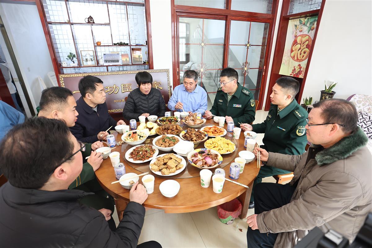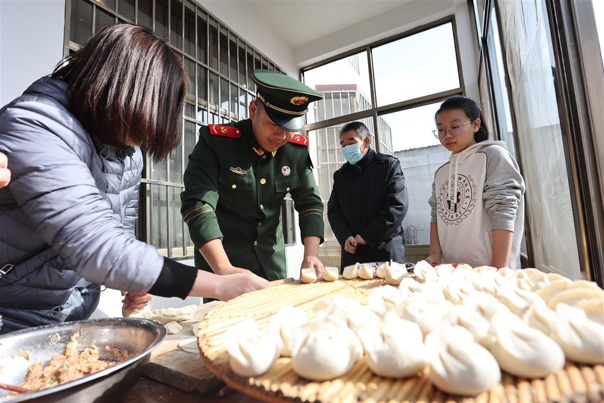 临近中午,战友们一起在李林雨家包起了水饺。马士杰将煮好的热腾腾的水饺端上了饭桌,夹到李林雨父母的碗里,一大家人热热闹闹地吃了一顿团年饭。
