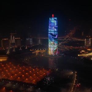 1月21日晚,郑州市郑东新区千玺广场上演灯光秀,欢庆新春佳节。郑东新区千玺广场将于1月22日至1月27日每晚18时至23时的每个整点交替播放科技版、新年版灯光秀,其他时间播放水墨画。