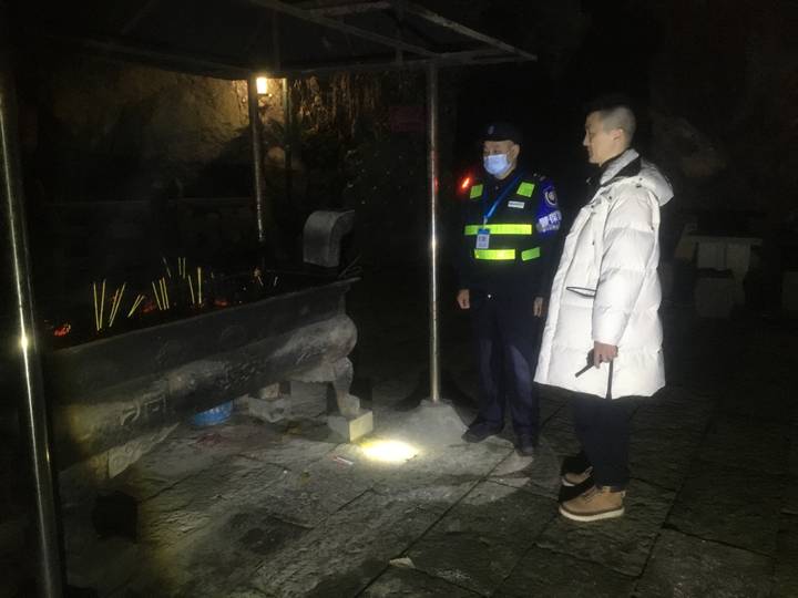 时钟指向零点,远远地传来了鞭炮声,新的一年来了。杨明雄放心不下,再次匆匆赶往重点区域紫云洞、金鼓洞等民间烧香点,确保山林安全。