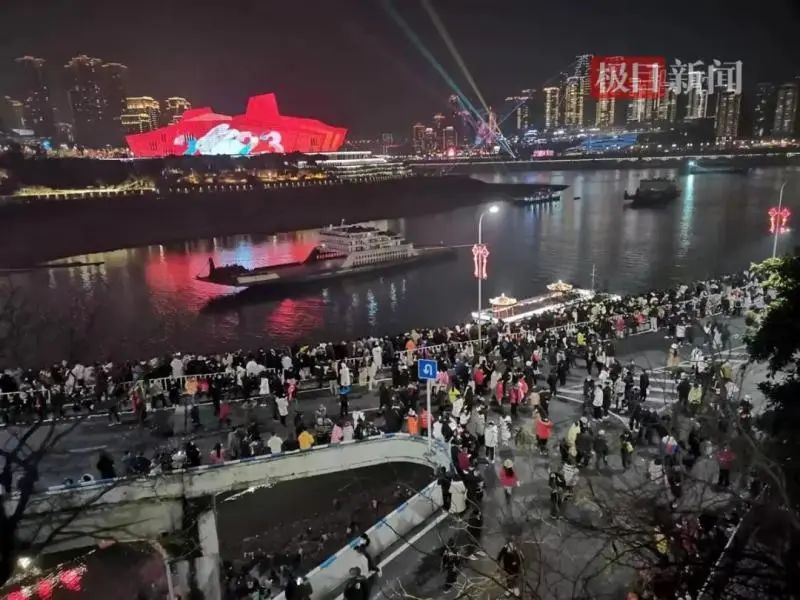 除夕夜,山城重庆上空焰火绚烂,市民在爆竹声中迎来2023年新春。