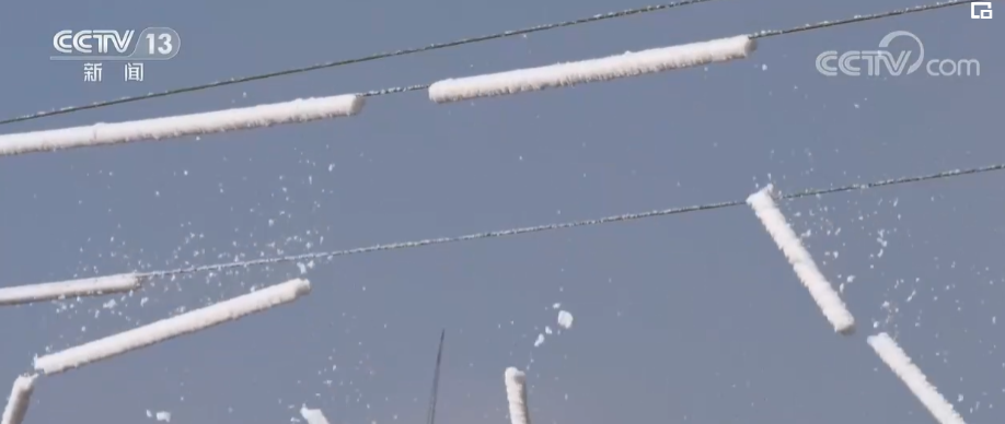 随着电流不断地增加,导线的温度也在不断上升,20多分钟后,线路上的覆冰开始脱落。