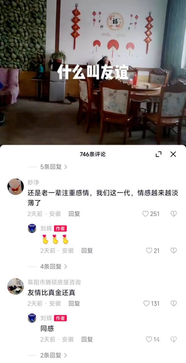 刘辉目前是颍上县一个民间救援队的负责人。“看到这么感人的场景,我随手拍了个视频发到了网上,心里也很感慨,像我们这个年代的人没法想象老人们的那种心情了。”