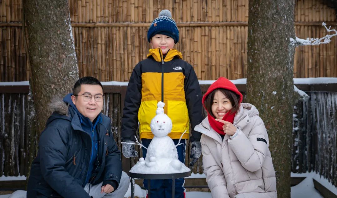 河南焦作游客孙高杰一家四口偶遇黄山下雪,家人都非常开心,他高兴地说:“看到黄山绝美的雪景,觉得黄山真是个好地方,我们还要再来。我们觉得黄山人民很热情,虽然天气比较冷,但是我们一家人都非常高兴,心里是暖和的。”