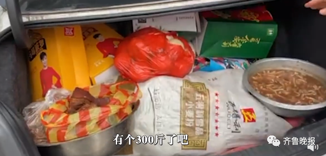 其中有整袋面粉、自家种的萝卜