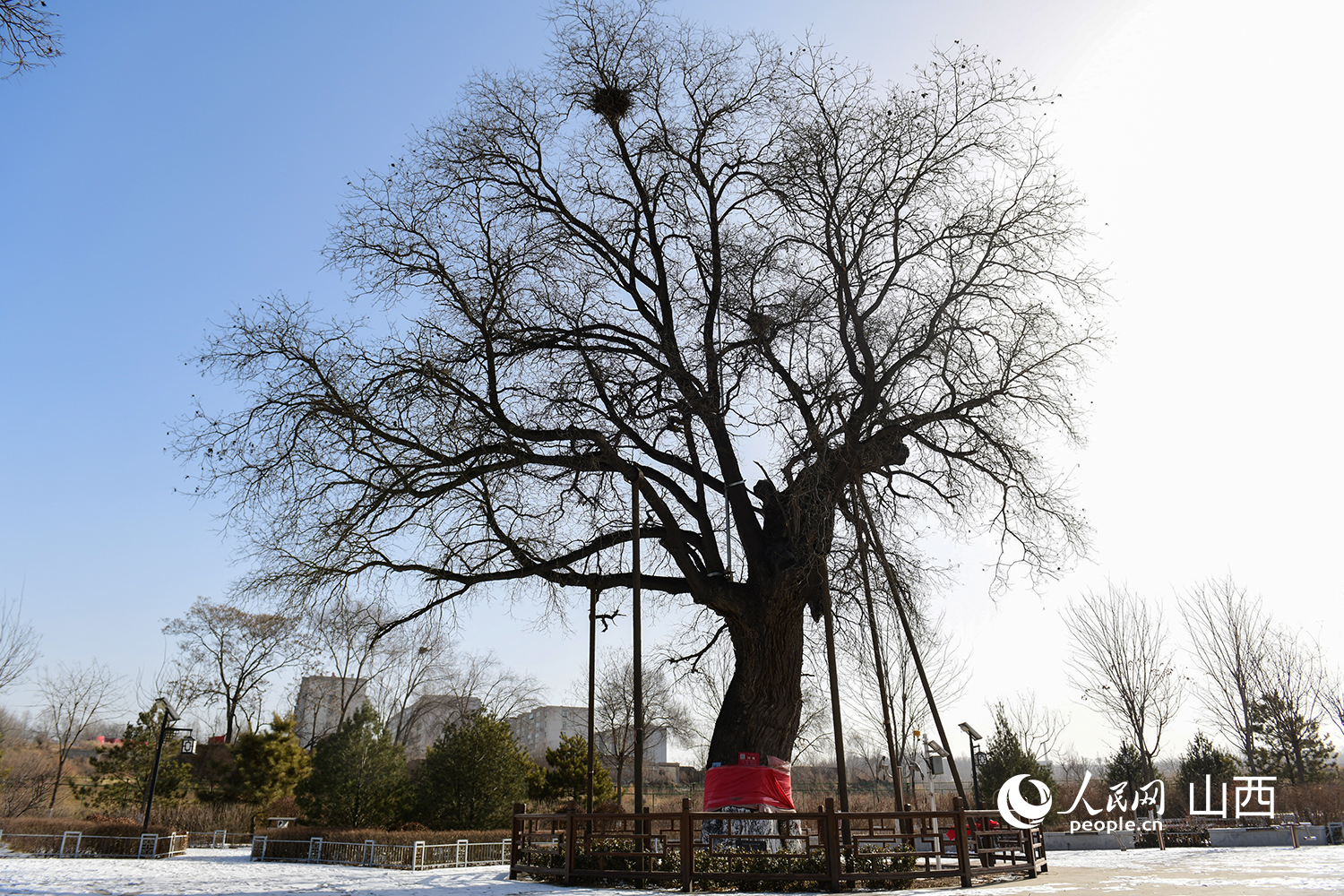 2023年的第一场雪后,太原市东山脚下的谷旦村显得愈加静谧,村中央的老槐树在日月流转中开启新岁。