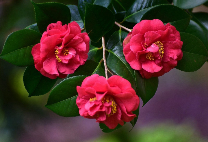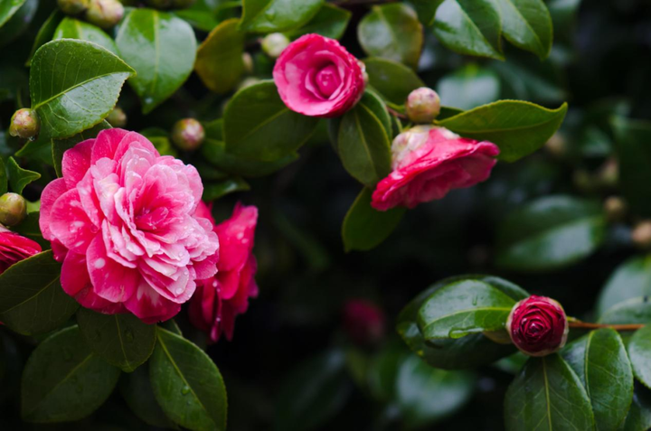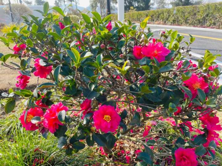 寒冬之中,钱塘区金沙湖公园内的山茶花悄然开放,在肥厚的深绿叶子中,层层叠叠,有浓烈的红、娇气的粉、媚惑的桃红、纯净的白……繁似春锦,灿若云霞,美丽极了。
