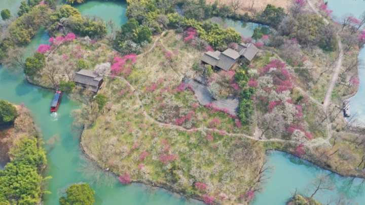 新春佳节,杭州西溪湿地探梅节活动正在进行,目前湿地内梅花的开花率在50%左右。竞相开放的梅花,吸引了不少游客前来“曲水寻梅”,领略别样的冬日之美。