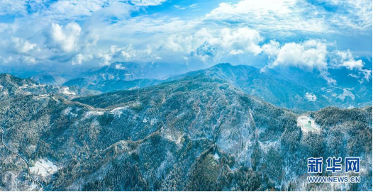 近日,雪后初晴的湖北省十堰市竹山县九女峰国家森林公园一片银装素裹,群山树木被冰雪覆盖,美如画卷。