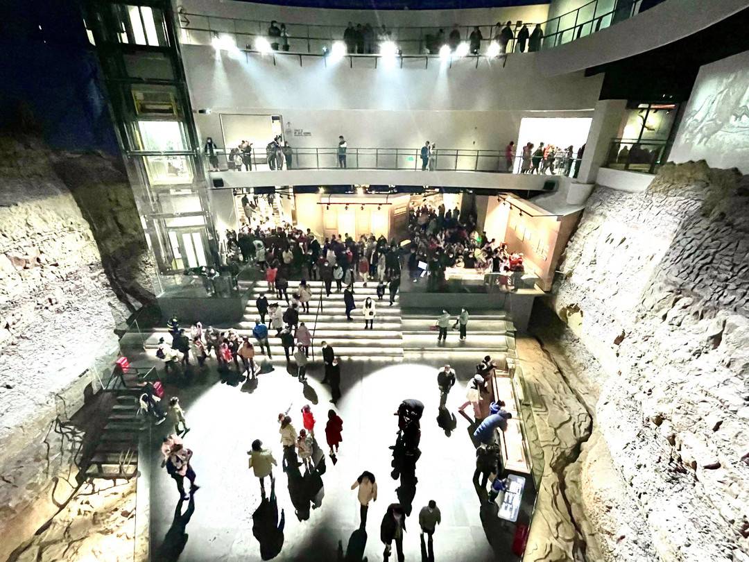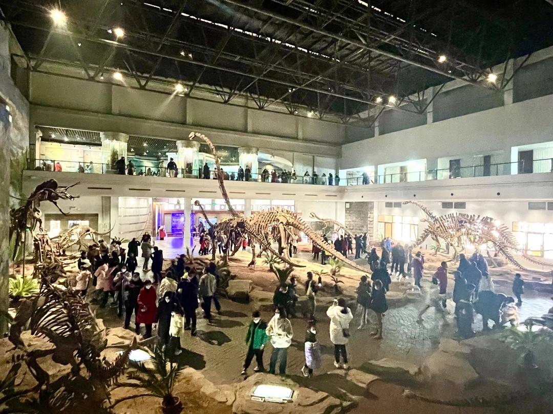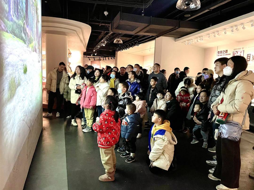 值得一提的是,大年初一上午“馆长送祝福”活动,馆长李健为5组幸运亲子家庭送上了新春祝福——龙宫六宝系列科普绘本;杂技儿童剧《恐龙馆奇妙夜》现场吸引了600余名观众观看;“馆长/专家月月讲”公益讲解活动,博物馆馆长、专家轮番登场为来馆观众带来志愿讲解服务,共吸引了400余名观众参与;“驯龙高手”知识大挑战活动、《科考小侦探之恐龙事件》亲子自助研学活动、“龙宫寻六宝新书贺新年”活动吸引了500余组亲子家庭参与;新推出的AR技术智慧导览受到小朋友们的热烈追捧,让孩子们可以在AR世界中探索侏罗纪恐龙世界;“龙”腾大山铺——自贡大山铺恐龙化石群遗址发现五十周年特展吸引了大量的游客观看。