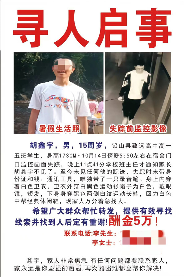 △胡鑫宇寻人启事图片来源:胡鑫宇妈妈视频账号