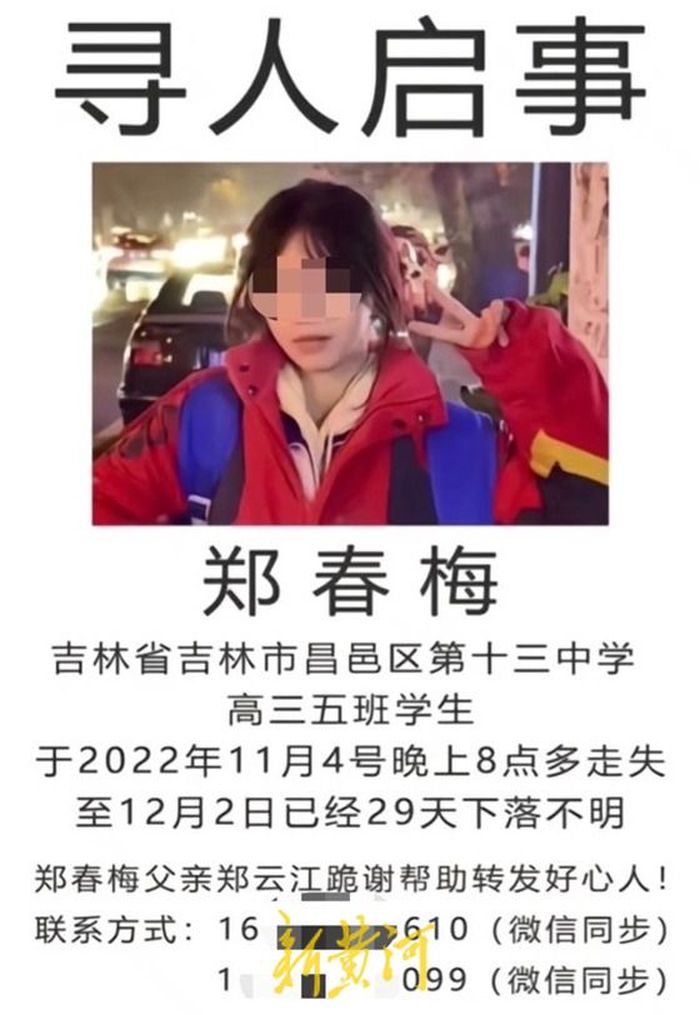 新黄河客户端消息,失踪106天后,江西15岁男孩胡鑫宇的遗体被找到。而于2022年11月4日晚上失联的吉林17岁女孩郑春梅,失踪至今87天,却仍杳无音信。