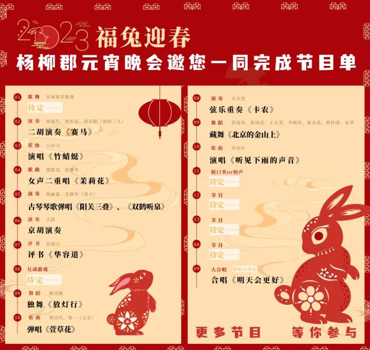 1月28日,一张晚会节目单在网络上发出,不少杨柳郡的居民们都兴奋起来。