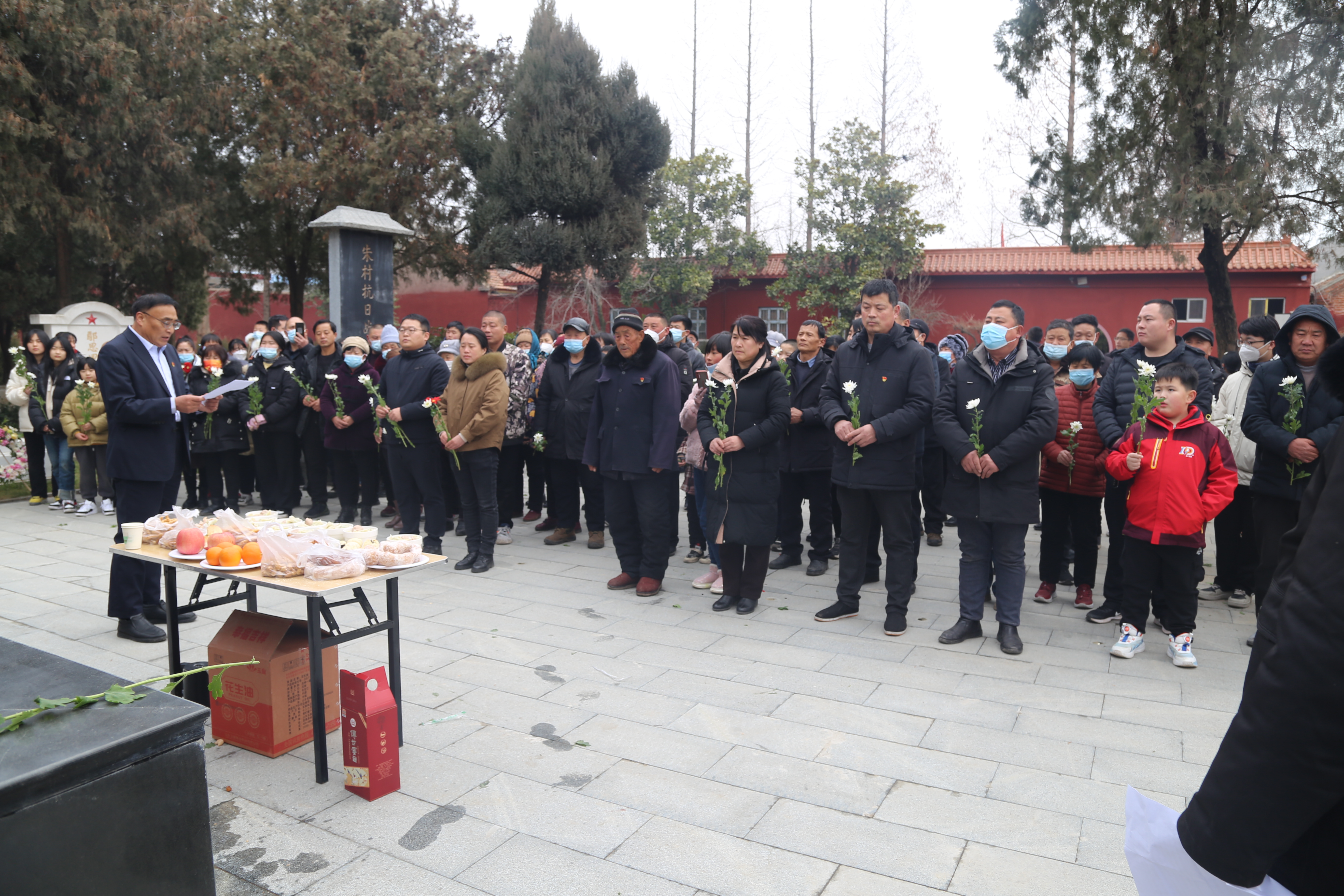 2023年1月22日,临沭县曹庄镇朱村抗日烈士陵园中举行新年头碗饺子敬英烈仪式,正在发言的是朱村党支部书记王济钦。临沭县融媒体中心供图