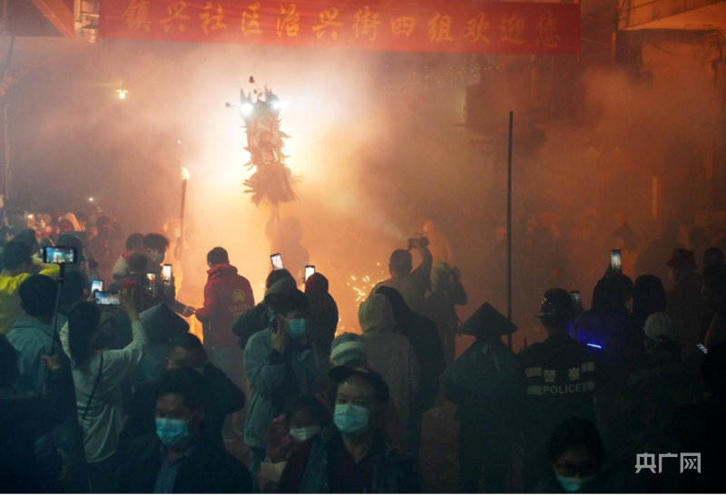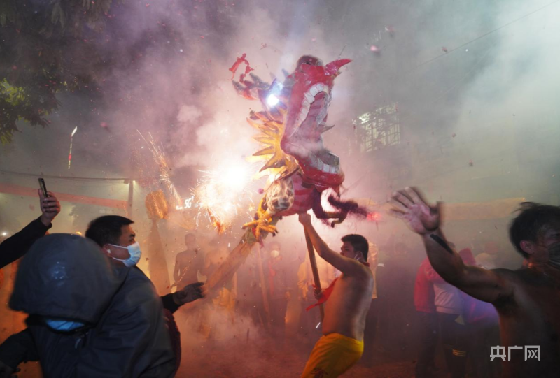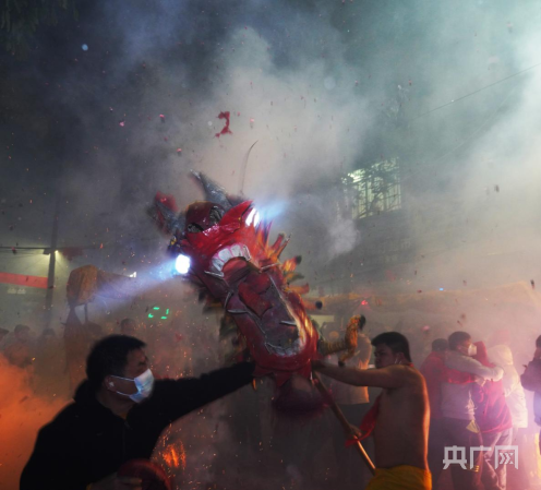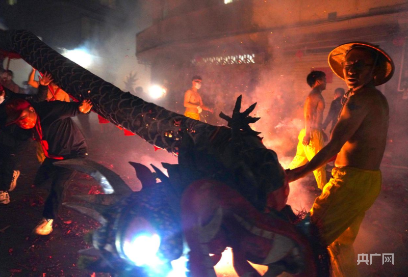 护龙队力保炮龙,舞龙现场热闹非凡(央广网发雷琦竣摄)