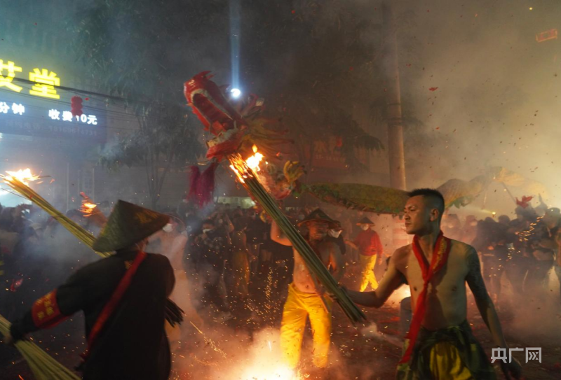 广西宾阳炮龙节活动现场火光四射,热闹非凡(央广网发雷琦竣摄)