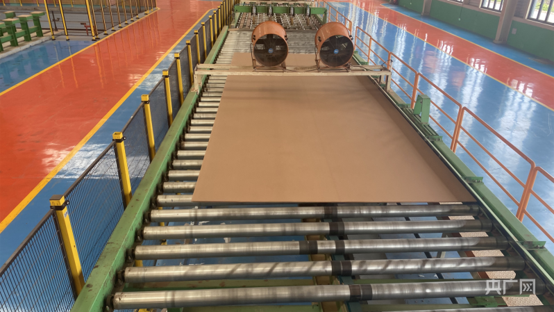 中(高)密度纤维板自动化生产线高效运转(央广网记者唐志强摄)