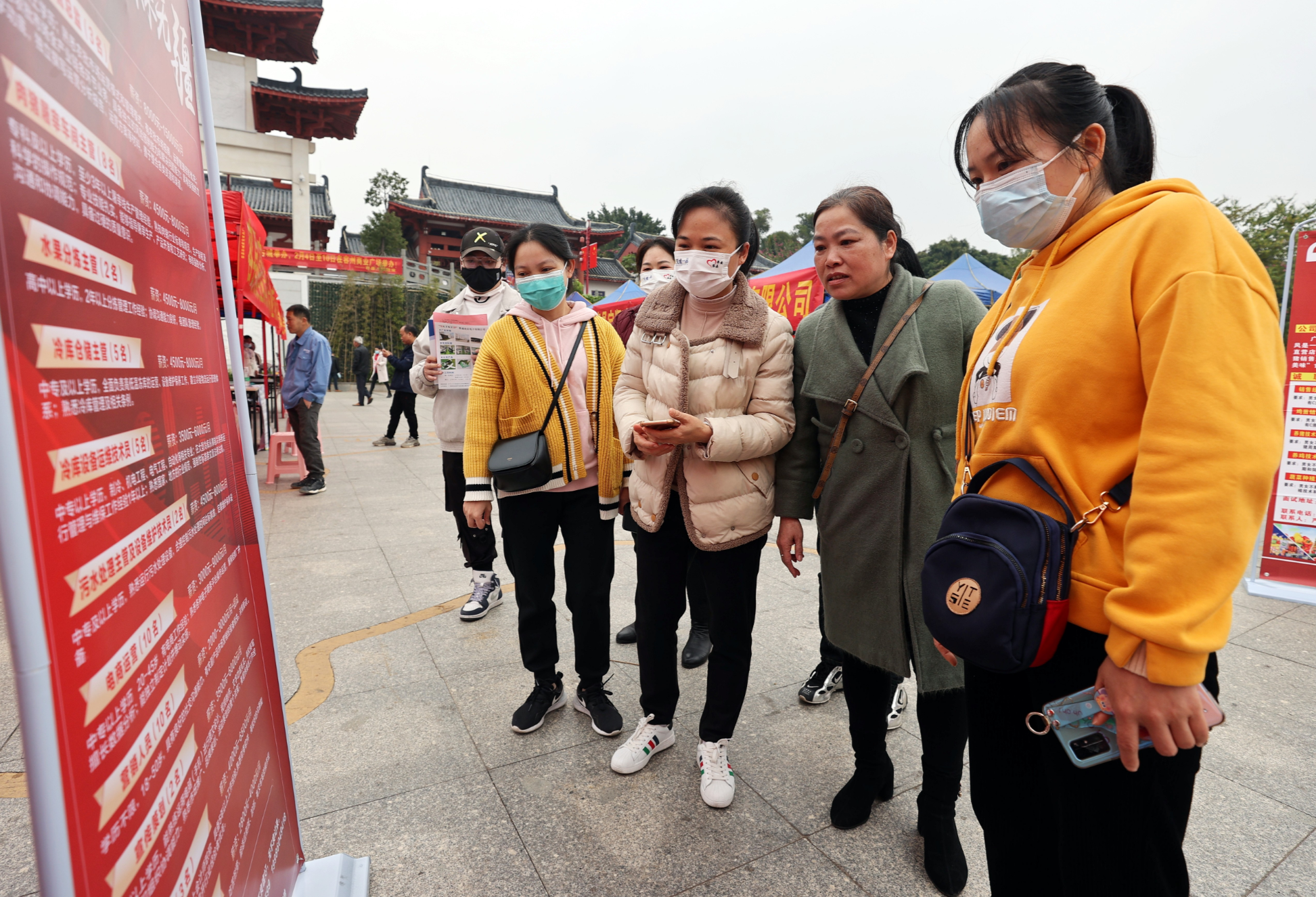 求职者在容县新春暖企行动招工活动上了解招聘信息(央广网发陈敏摄)