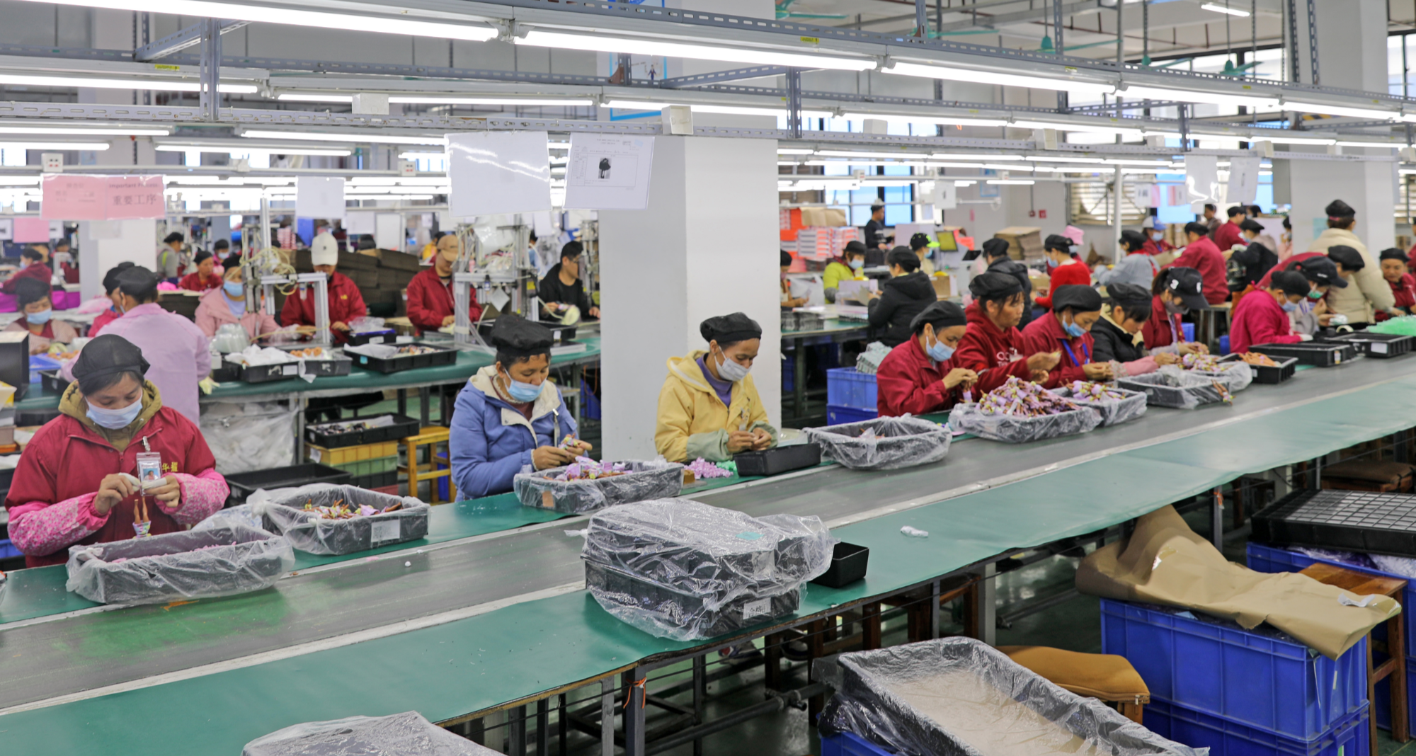 容县华耀玩具制造有限公司装配包装车间工人正忙碌着(央广网发冼新梅摄)
