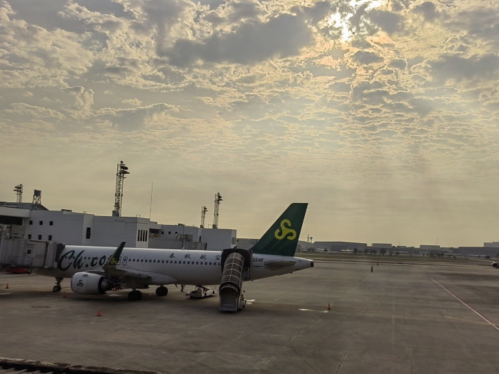 早上8时05分,搭乘春秋航空9C7419航班的近40名团队游客,从广州飞抵泰国曼谷,一场为期6天的曼谷芭提雅沙美岛浪漫之旅将在这里开启。
