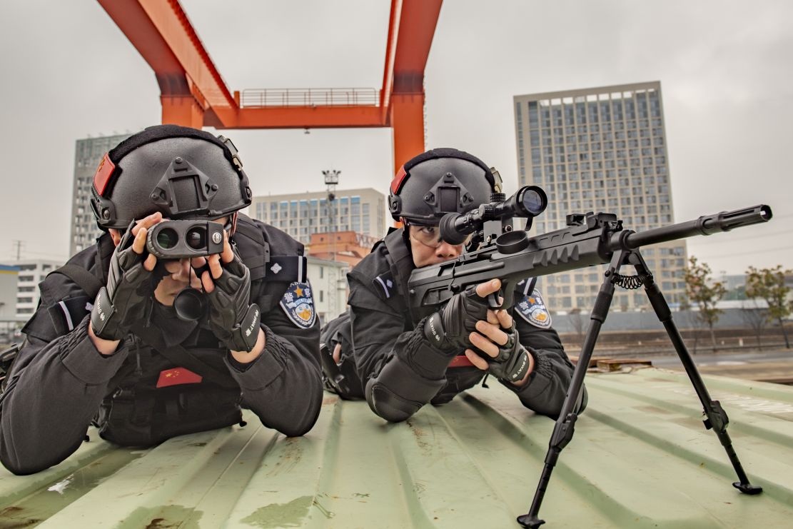 狙击组占领制高点观察现场情况