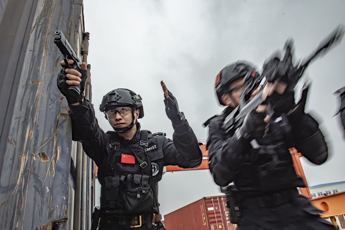特警队员示意队友展开突击