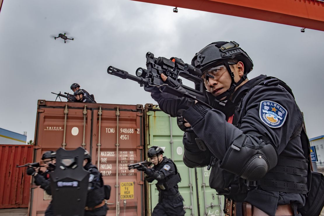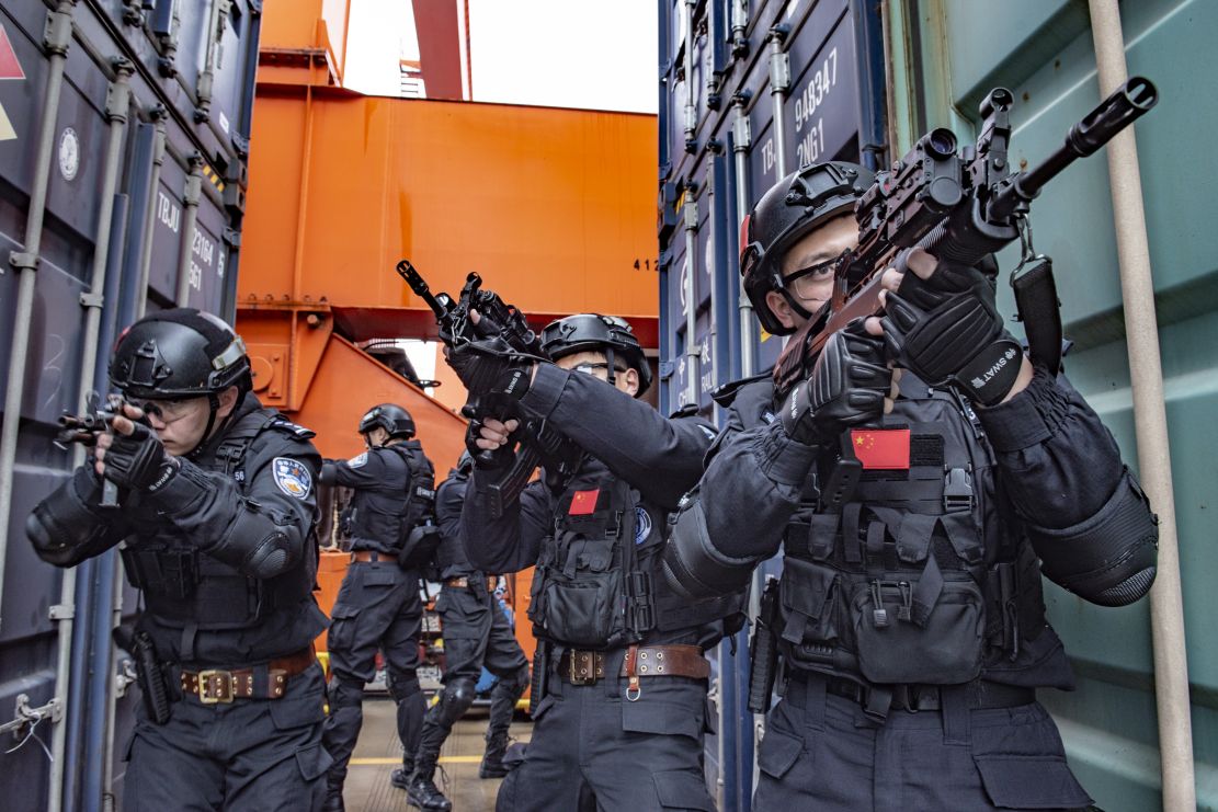 特警队员快速追击目标