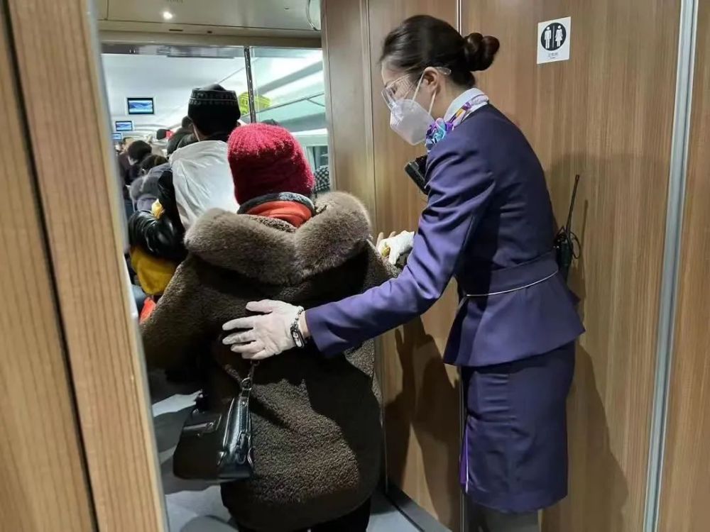 上海局集团公司还成立“夜间高铁”专班,帮助“老幼病残孕“等重点旅客安全上下车,主动为长途旅客提供热水,高标准做好列车环境保洁。