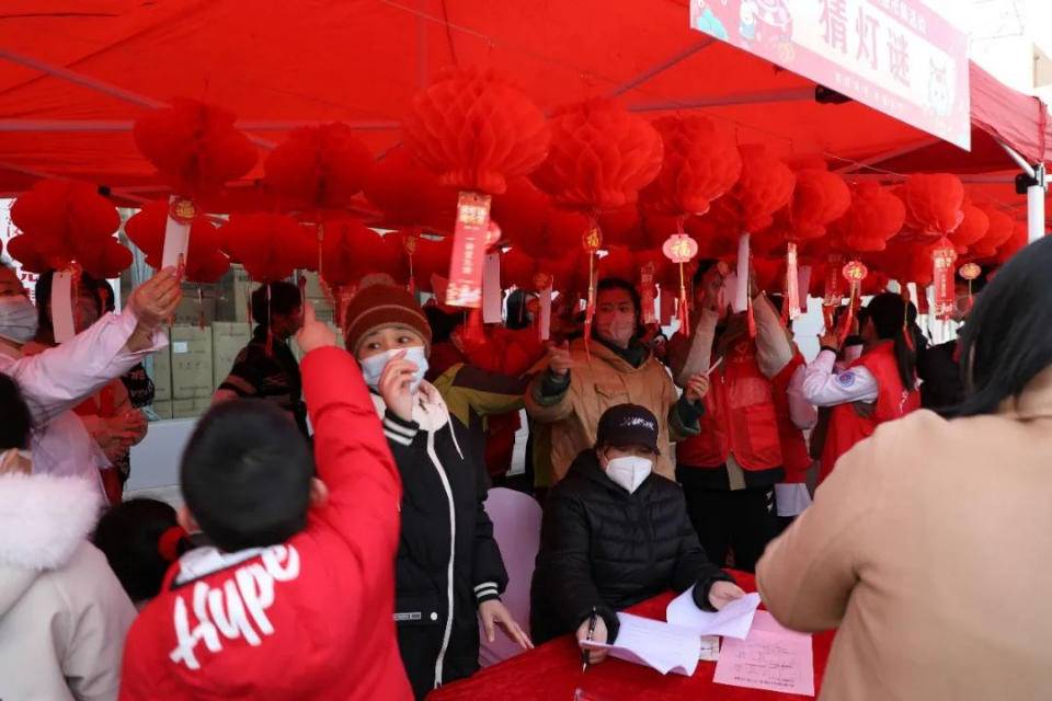 压轴好戏当属“猜灯谜”,百余条谜语挂在五彩缤纷的灯笼上,格外喜庆引人注目,广大居民踊跃参与,欢呼声、喝彩声交融连绵,营造出浓厚的节日氛围。