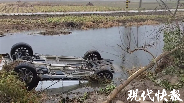 现代快报讯(通讯员陈冬平记者姜振军)2月12日上午8点多钟,江苏盐城市射阳县境内下起了中雨,在该县四明镇李尖村的中心水泥路上,一辆私家车突然失控冲进路边的河中,倒扣在冰冷的河水里,车内4人被困。危急时刻,附近的两名村民跳入河水中营救,在岸上村民的帮助下,成功将车内4人全部救了出来,避免了悲剧的发生。