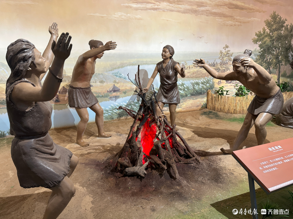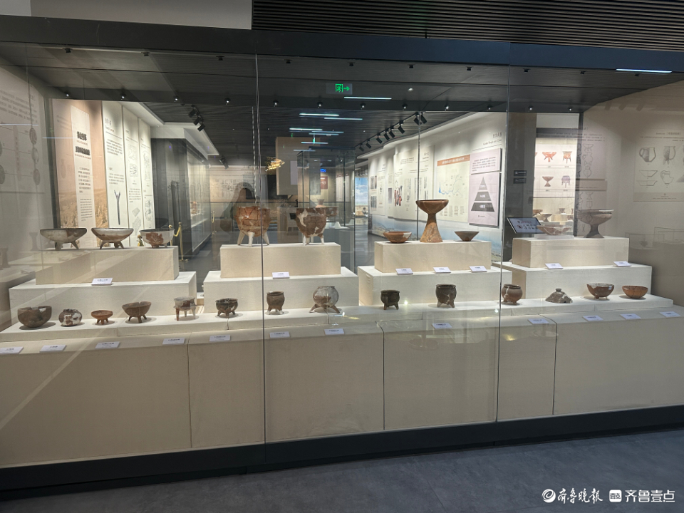 走进大汶口遗址博物馆,可以看到“海岱曙光”的主题,从发现、探索、守护、仰望四个层面,通过图文、场景复原、多媒体等手段对大汶口的发掘历史、大汶口文化进行了系统性展示,介绍了遗址的发掘成果和历史价值,再现大汶口人日出而作、载歌载舞等生产生活和社会习俗。在这里,可以看到各类石器、玉器、陶罐,以及出土骸骨的现场还原,展出的文物共200余件(套)。